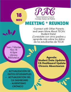 Parent Advisory Council Meeting/ Reunión del Consejo Asesor de Padres